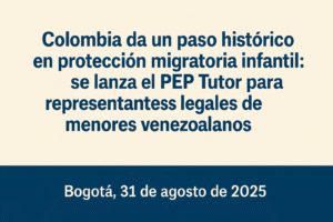 Bogotá, 31 de agosto de 2025 — En una decisión que marca un hito en la política migratoria del país, el Gobierno del Presidente Gustavo Petro, a través de la Unidad Administrativa Especial Migración Colombia, anunció la implementación del Permiso Especial de Permanencia para Representantes Legales y/o Custodios (PEP Tutor). Esta medida busca garantizar la protección integral … Sigue leyendo Gobierno colombiano lanza el PEP Tutor: un paso histórico en la protección migratoria infantil